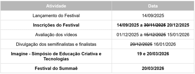 2) Os vídeos devem ter sido produzidos por estudantes e utilizados em algum evento Summaê.